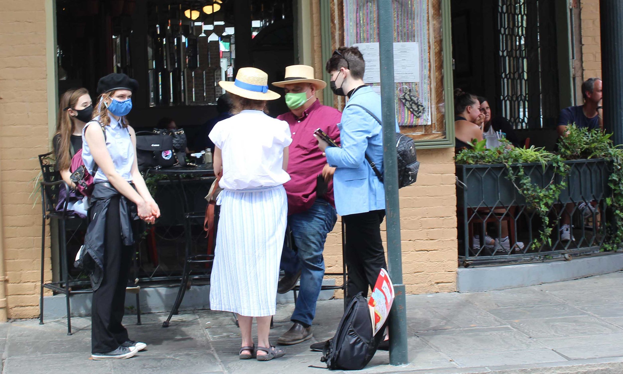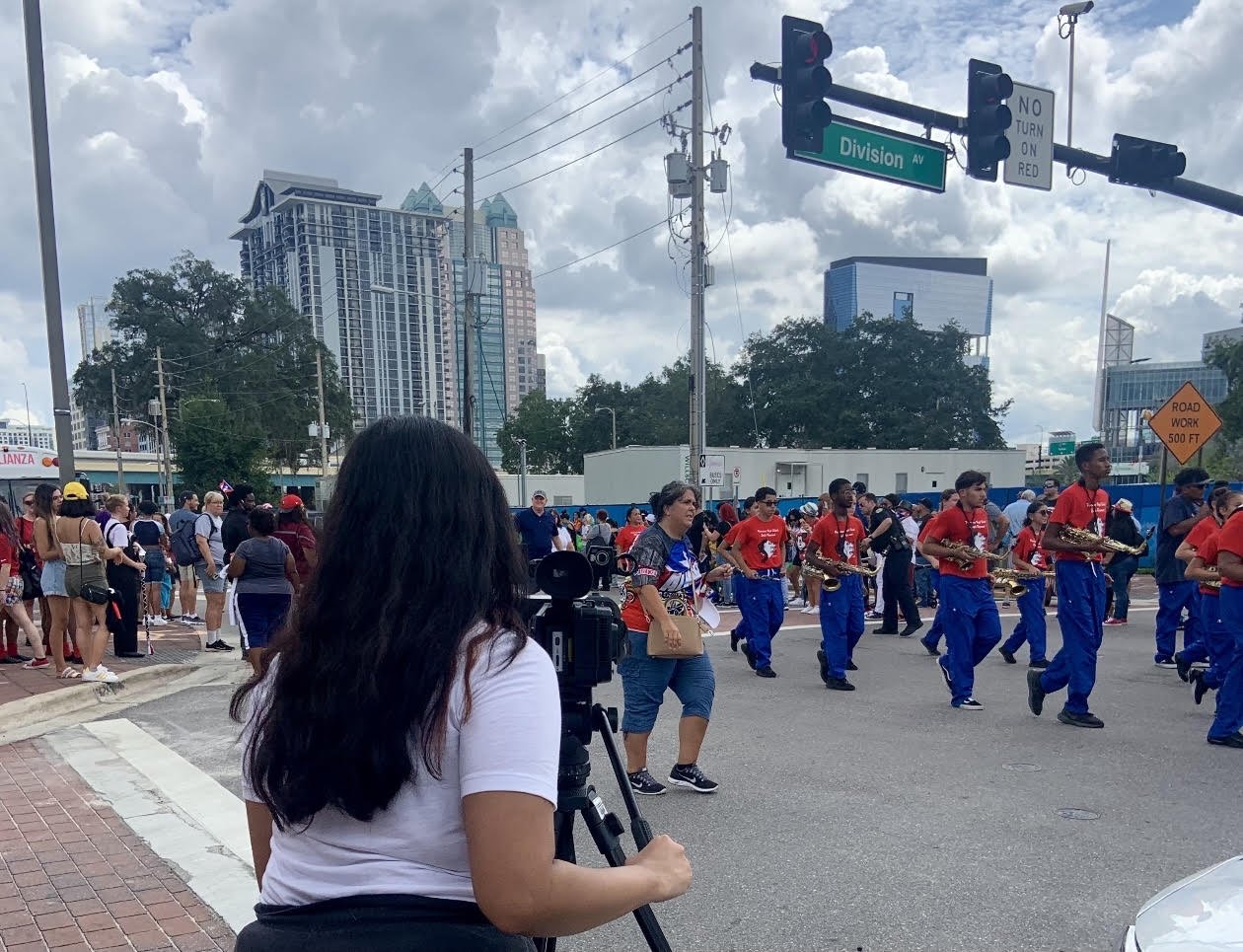 Top: Students conduct an interview while investigating the 1973 arson of a gay bar in New Orleans that killed 32. Middle: Students discuss the movie Spotlight. Bottom: 2021 Immersion student Allegra Montesano covers a march.